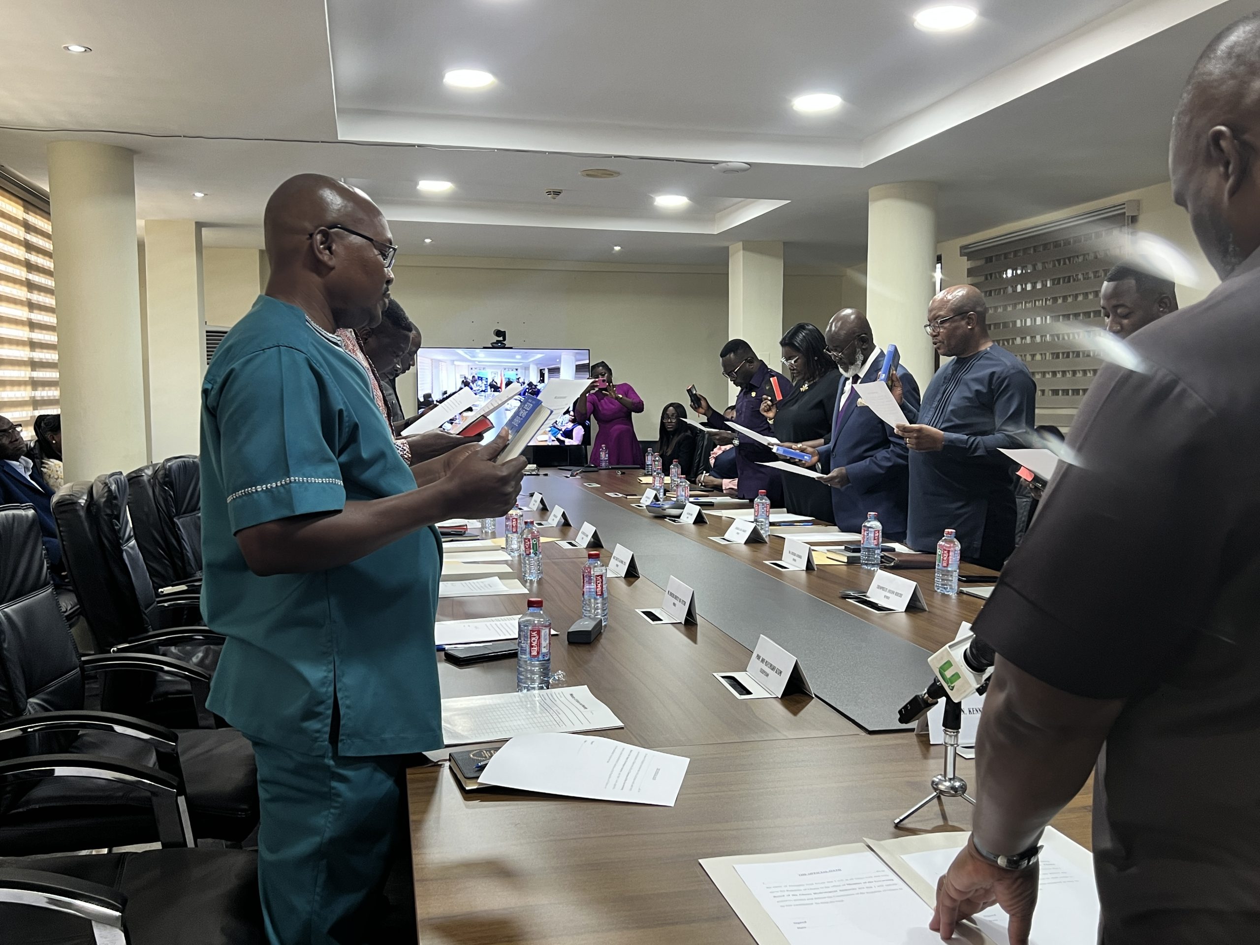 The Minister for Works, Housing and Water Resources, Hon. Kenneth Gilbert Adjei, on Monday, 14th July 2025, officially inaugurated the reconstituted Governing Board of Ghana Hydrological Authority (HYDRO) at a brief but significant ceremony held at the Ministry’s Conference Room in Accra. In his address, the Hon. Minister emphasized the critical role of the Board in building a more resilient and sustainable Ghana. He underscored that the task entrusted to them is vital, as their expertise and dedication will be crucial in protecting the environment, safeguarding communities, and supporting Ghana’s ongoing social and economic development. “With HYDRO’s vision to become a centre of excellence in hydrological and hydraulic engineering services in Africa, the Authority is ready to leverage its technical expertise and innovative strategies for the benefit of all Ghanaians,” the Minister stated. He further highlighted the threats posed by climate change, urban flooding, and coastal erosion, which continue to damage infrastructure and livelihoods across the country. The Government, he noted, has responded with heavy investments in dredging and drainage projects under the National Flood Control Programme, yielding significant results nationwide. However, he cautioned that the challenge persists, requiring a concerted national effort, robust enforcement, and sustained public education. The Minister charged the new Board with the monumental responsibility of providing strategic leadership and effective oversight to ensure that HYDRO delivers on its mandate efficiently. Their most urgent responsibility is to develop a comprehensive and actionable strategic plan to address coastal erosion and flooding in Ghana. This plan, he emphasized, should be forward-thinking, innovative, and practical, integrating sustainable solutions, leveraging technology, and promoting collaboration among all relevant sectors and stakeholders. Responding on behalf of the Board, the Chairman, Prof. John Manyimadin Kusimi, expressed his deep gratitude to His Excellency the President for the confidence reposed in him and his colleagues at this pivotal moment in Ghana’s development. Prof. Kusimi, who has long worked with HYDRO and related sectors on coastal erosion and flood risk research and projects, acknowledged the scale of the challenges ahead. He assured the Minister and stakeholders that the Board is fully prepared to “hit the ground running” and deliver on its mandate with urgency and dedication. He further pledged the Board’s commitment to work closely with the Ministry, HYDRO’s management and all partners to advance the Authority’s vision and mission. Governing Board Members